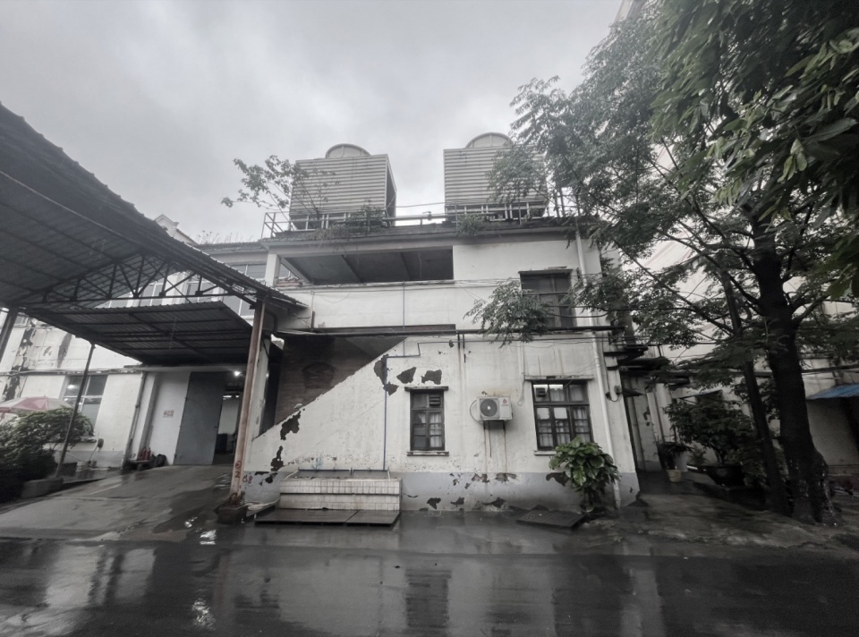 旧址的饭堂经过多轮变迁,已从饭堂功能转变为研发室功能,再到现状的“办公+仓库”功能,建筑情况不佳,窗户、墙体经历了不同程度的破坏,最为可惜的是原有饭堂的镂空窗花如今只剩一半。历史风貌十不存一,曾经是老厂最具活力的建筑,现今门可罗雀。