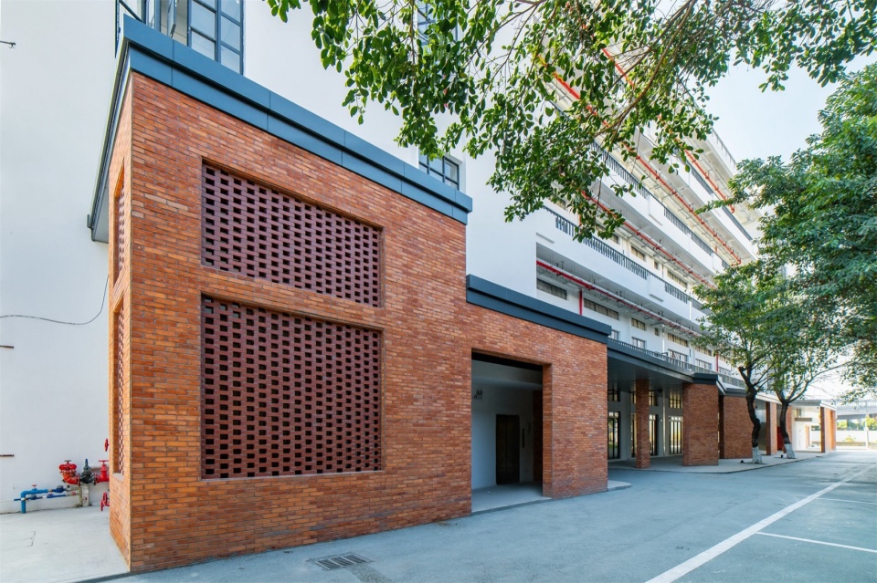 In the early stage of the park, many buildings were constructed with red bricks, adapted to the unique climate of the Pearl River Delta area with simple hollowing out of the original materials for ventilation, cooling, and shading. Combined with the historical elements of the old brick factory, new arrangements have been made to form a continuous corridor made of red bricks from east to west, integrating the project site to create a unified, complete, and standardized spatial circulation.