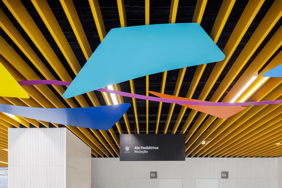 位于波尔图的São João医院的儿科病房,经过多年的期待和媒体的关注,它已成为葡萄牙医疗保健系统革新和创新的标杆。在这一层面,医院管理部门的愿景不仅是保证提供最高水平的医疗服务,同时也要保证小病人们的健康,舒适和快乐。基于这一点,他们选择了由一个多学科团队为病房的社交空间、通道和休闲区设计形象、设置和环境。但挑战在于在休闲区的建筑语言和室内走廊中的叙事性的图案插画之间搭建联系。